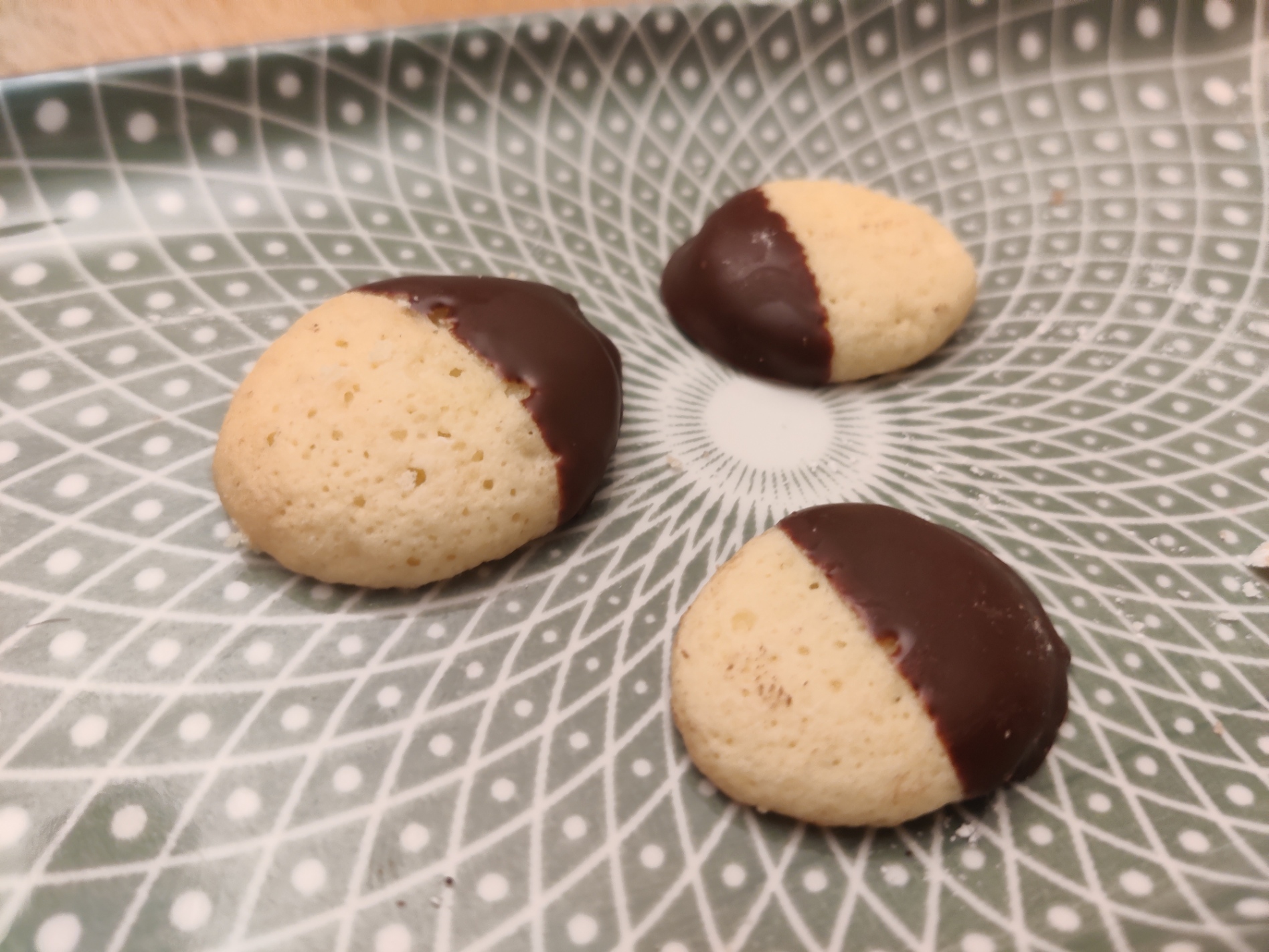 Die Kekse werden recht dünn und zart (ähnlich Azora-Keksen), zerlaufen auch sehr beim Backen. Daher bitte genug Abstand lassen!