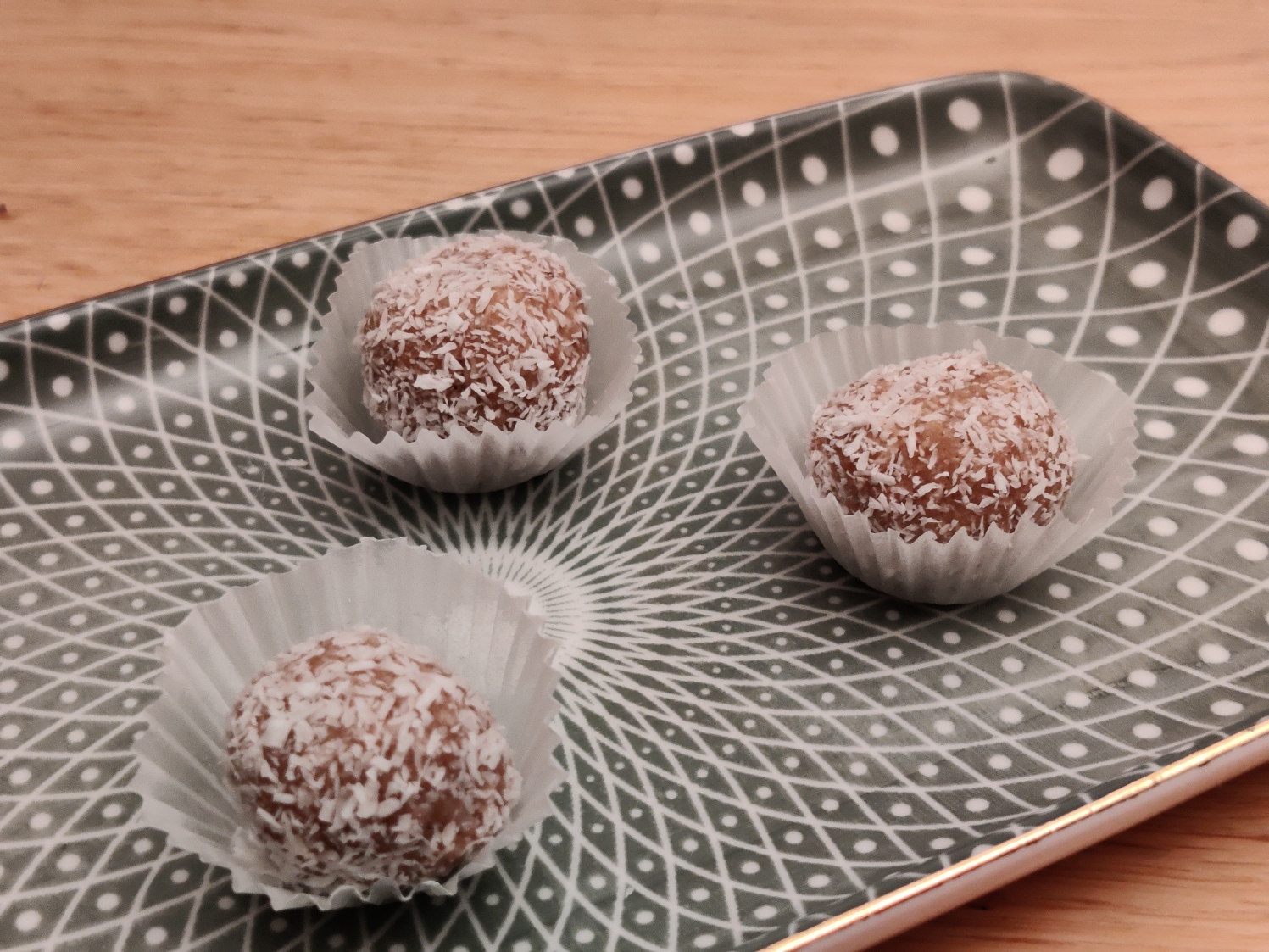 Butter und Zucker schaumig rühren dann die restlichen Zutaten einarbeiten und etwa eine Stunde Kühl Lagern. Anschließend kleine Kuglen formen, in Kokosflocken wenden und gut verschlossen an einem Kühlen Ort Lagern.